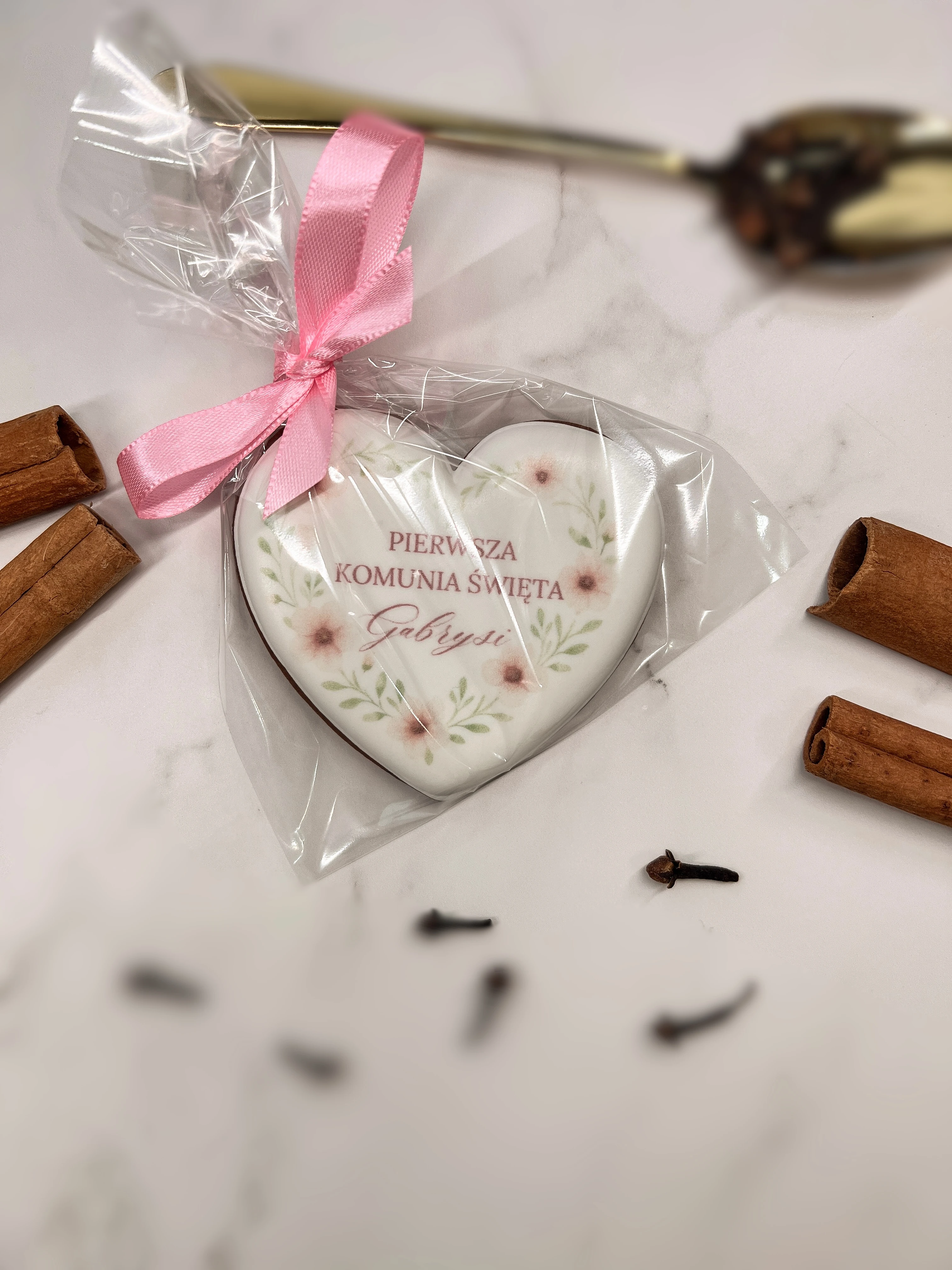 Piernik serce w kwiaty - podziękowanie dla gości komunijnych