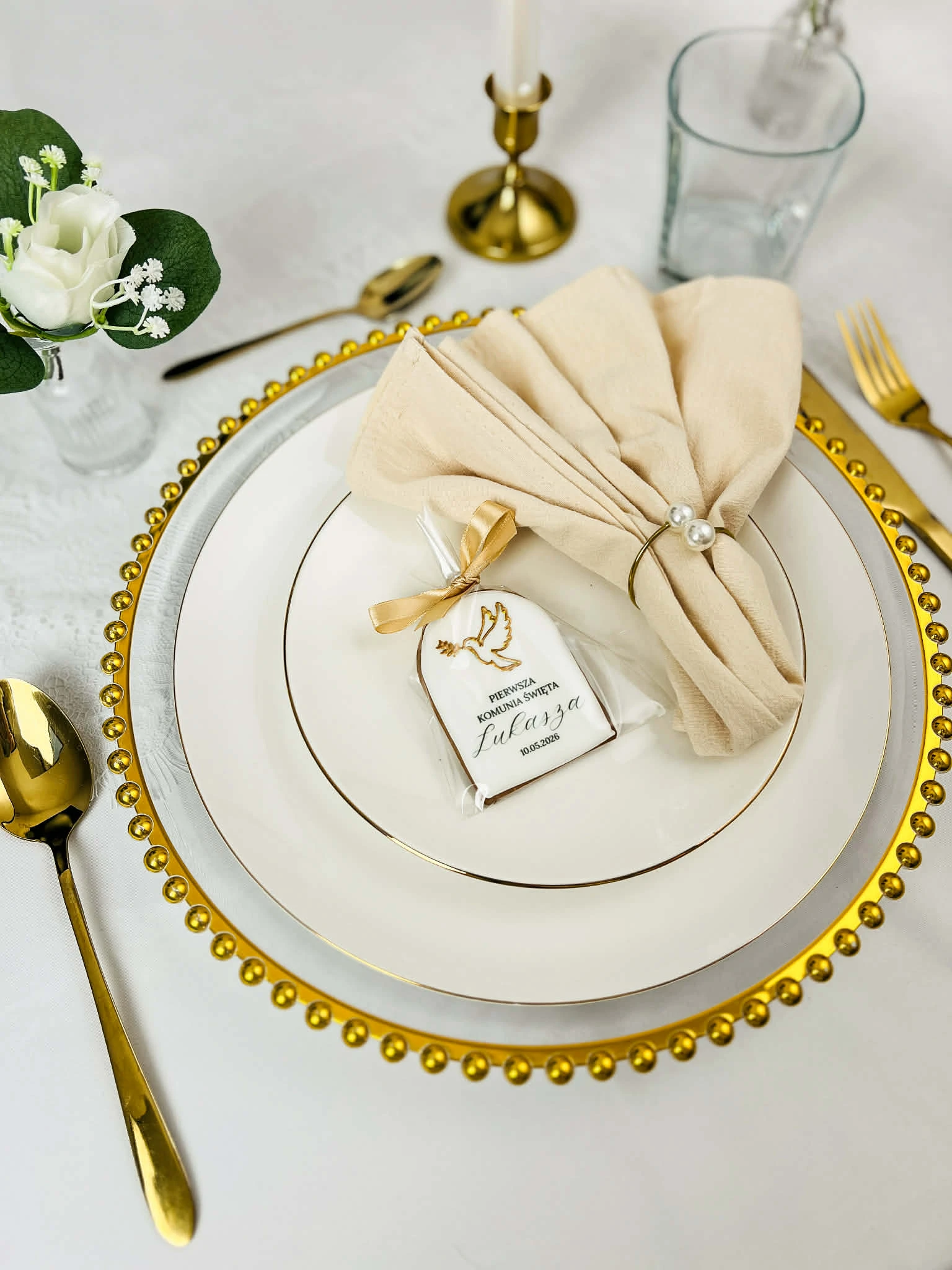 Podkreśl wyjątkowość Pierwszej Komunii Świętej subtelnym i eleganckim upominkiem. Nasz tradycyjny piernik komunijny to uniwersalny wybór, który zachwyca precyzją wykonania. Delikatna forma oraz starannie wykonane zdobienia nawiązują do symboliki tego wyjątkowego dnia. To subtelny gest wdzięczności dla gości, który dzięki swojej estetyce staje się integralną częścią uroczystej oprawy i piękną pamiątką tej szczególnej chwili.